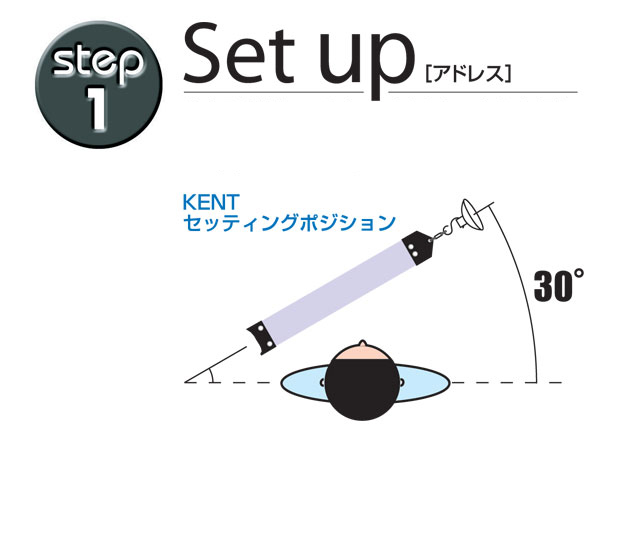 上右図のように体に対して30度の角度を保ち、グリップを握り、